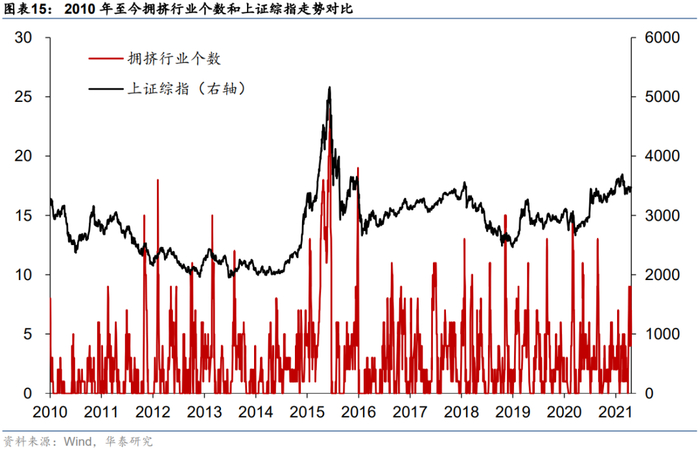 在前期报告《行业配置策略:拥挤度视角》(2020-11-27)中,我们从控制交易风险的角度出发,构建拥挤度指标对各行业的交易过热风险进行衡量,并结合门限回归方法筛选了能够有效提示行业指数下行风险的指标。最终构建了三个以量价数据为基础行业拥挤度指标。这三个指标中有任意一个触发时,行业指数处于拥挤状态:
