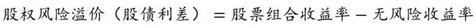 股权风险溢价ERP(equity risk premium)的定义是指股票市场组合超过无风险资产收益的回报,即市场投资组合或具有市场平均风险的股票收益率与无风险收益率的差额,其经济学含义是投资者因承担市场风险所得到的额外补偿。两个收益率的差为股票的风险溢价,也被称为股债利差,即: