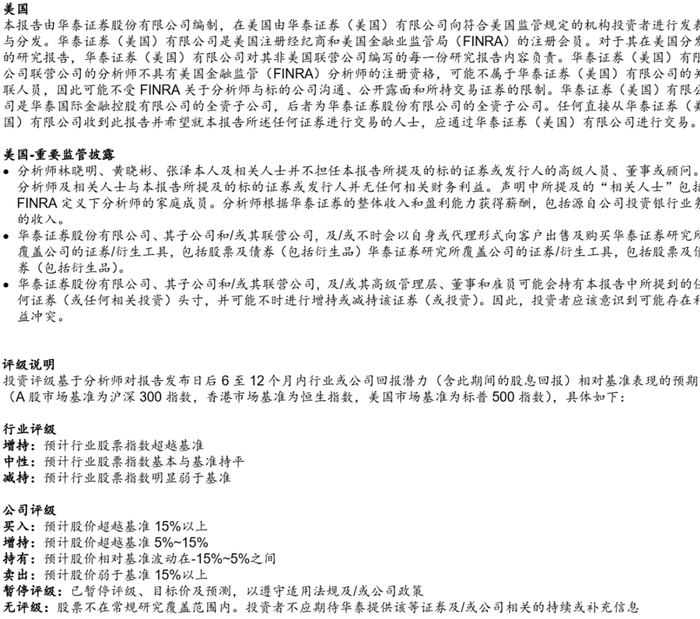 本公众平台不是华泰证券股份有限公司(以下简称“华泰证券”)研究所官方订阅平台。相关观点或信息请以华泰证券官方公众平台为准。根据《证券期货投资者适当性管理办法》的相关要求,本公众号内容仅面向华泰证券客户中的专业投资者,请勿对本公众号内容进行任何形式的转发。若您并非华泰证券客户中的专业投资者,请取消关注本公众号,不再订阅、接收或使用本公众号中的内容。因本公众号难以设置访问权限,若给您造成不便,烦请谅解!本公众号旨在沟通研究信息,交流研究经验,华泰证券不因任何订阅本公众号的行为而将订阅者视为华泰证券的客户。
