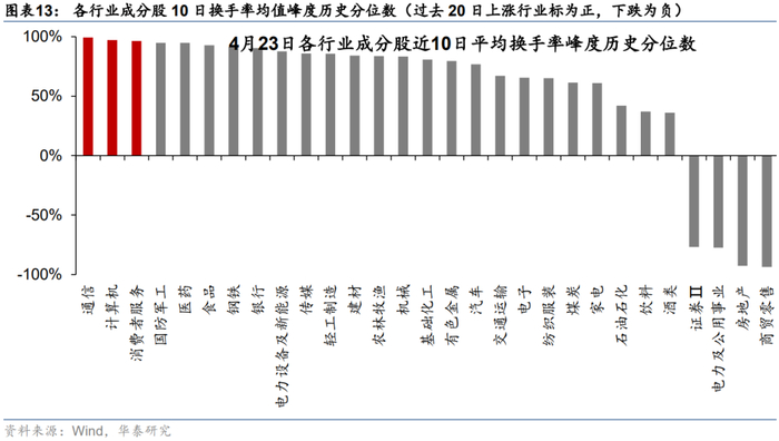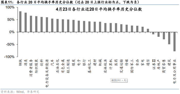 2. 过去20天行业指数平均换手率历史分位数(turn_20):行业指数换手率越高,当前的交易热度越高,短期资金过多涌入可能导致踩踏。