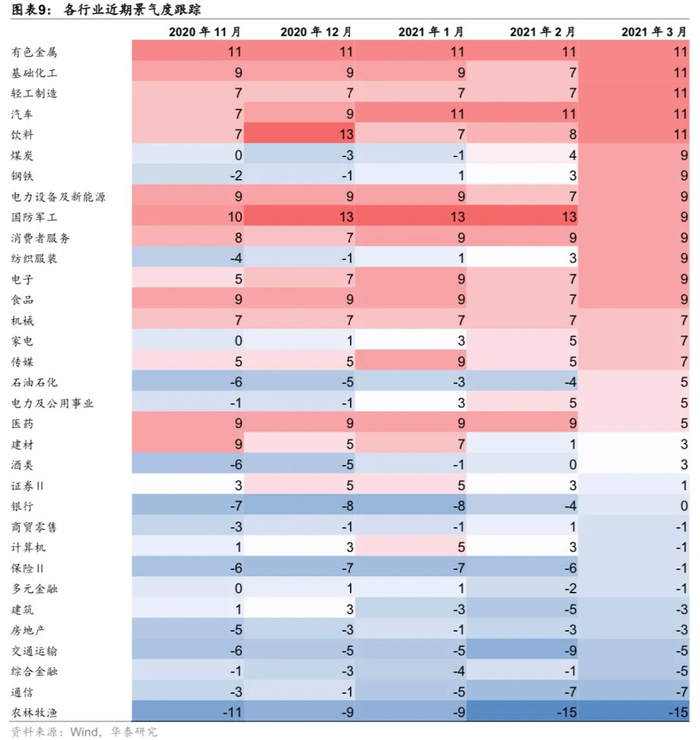 景气度跟踪:推荐有色金属、基础化工、轻工制造、汽车、饮料