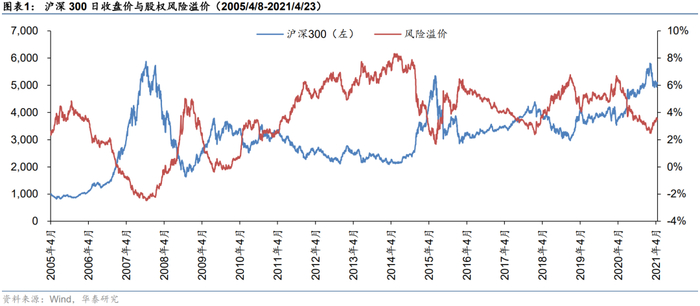 股权风险溢价与股指反向关系明显,可辅助判断市场拐点