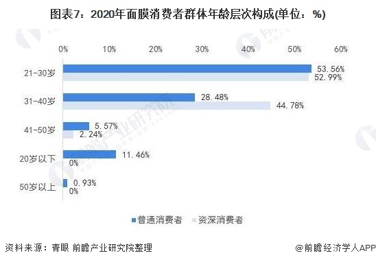 根据青眼发布的最新数据显示,无论是常年购买面膜的资深消费者还是没有特殊偏好的普通消费者,21-30岁人群均为面膜的消费主力军,占比均在一半以上。