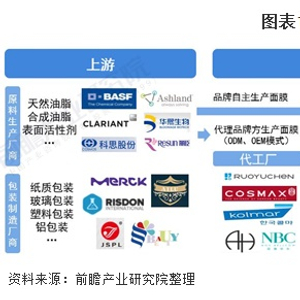 面膜产业链覆盖上游原材料、包装,中游为面膜品牌方,下游渠道,再到消费者。伴随着面膜行业的快速发展,代工厂商、代运营商也逐渐成为了面膜产业链的重要参与者。面膜代工厂商与品牌方的合作方式主要为OEM、ODM模式。
