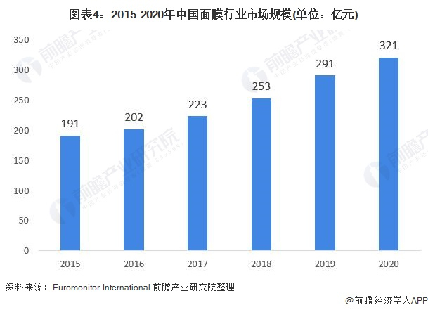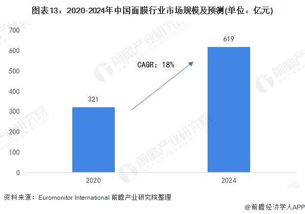 注:中国面膜市场规模数据是根据Euromonitor International公布的面膜占中国护肤品市场规模的比重进行的测算。