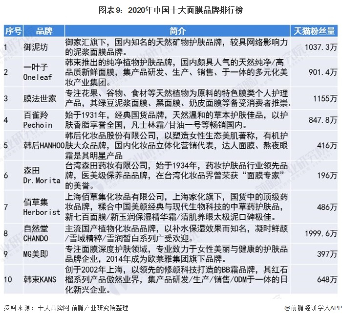 欧美品牌由于定价高,主要针对高端市场,在大众市场消费不足,并未进入排行榜中。其中,御泥坊排名第一,天猫粉丝量更是达到了1037.3万。