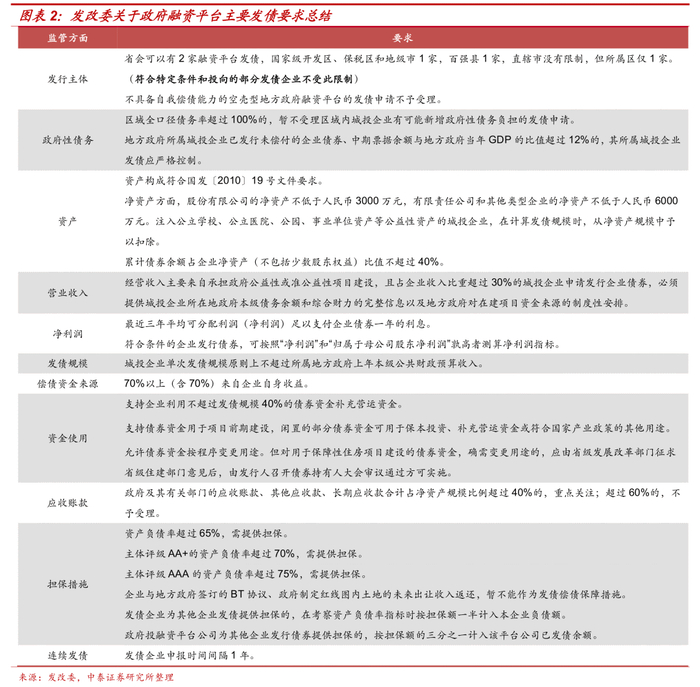 1.发改委关于政府融资平台发行债券要求