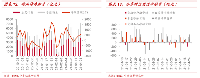 具体来看,企业债、公司债、中期票据、短期融资券及定向工具净融资额分别为-191.89亿元、236.45亿元、144.03亿元、359.15亿元、17.9亿元。本周企业债净融资规模持续流出,公司债、短融、中票和定向工具净融资额有所上升。