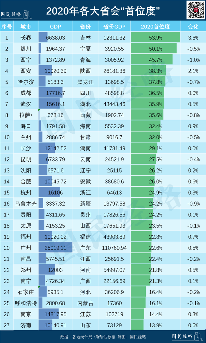 相比而言,西安、成都、武汉首位度都超过30%,而长春更是超过50%。