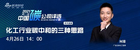 4月26日14:00,广发证券化工首席 何雄 分享主题:化工行业碳中和的三种思路>>>>>>点击进入直播间