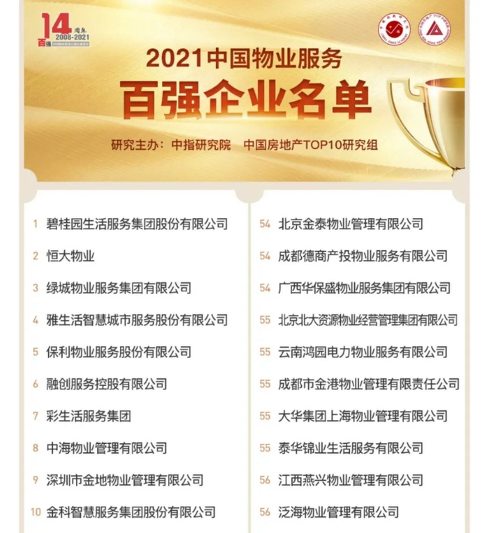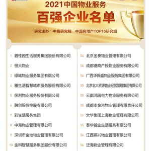 “2021中国物业服务百强企业服务规模TOP10”第一