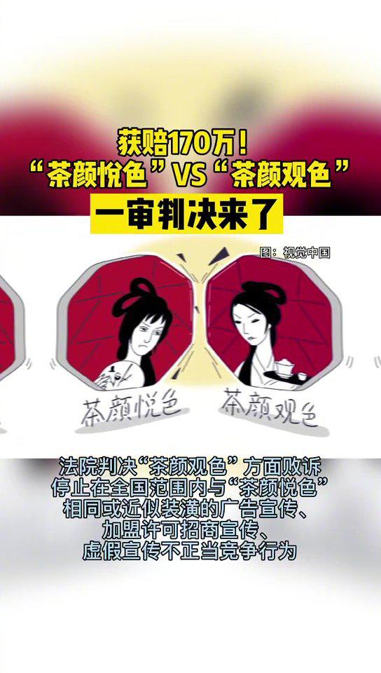 4月22日,湖南省长沙市天心区人民法院一审判决“茶颜观色”方面败诉,向“茶颜悦色”赔偿经济损失及合理维权费用累计170万元。