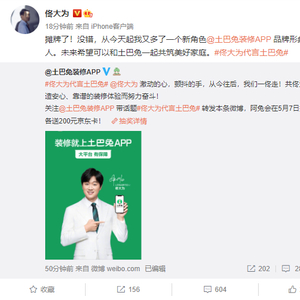 “摊牌了!没错,从今天起我又多了一个新角色——土巴兔装修APP品牌代言人,未来希望可以和土巴兔一起共筑美好家庭。”4月26日,随着知名实力派演员佟大为发布微博,为期3天的代言人猜想活动落幕,土巴兔也通过微博揭晓了全新代言人的真实身份。
