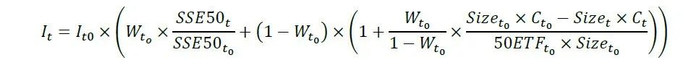 其中为每月期权展期日时ETF现券配置比例,SSE(50)为t时上证50数值,Size(t0)为期初期权合约单位(期权合约单位会由于股指ETF分红而有一定变化),C(t0)为期权费,50ETF(t0)为上证50ETF期初数值。