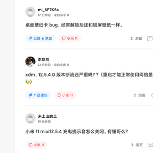 适配时间长只是一个小小的因素,引发用户群体大范围的“声讨”,最为主要的还是现行版本 MIUI 12 的稳定性较差,各种 bug 层出不穷,尤其是在小米 11 和红米 K40 系列的新机型上,论坛上几乎成为“吐槽”和“捉虫”大会。