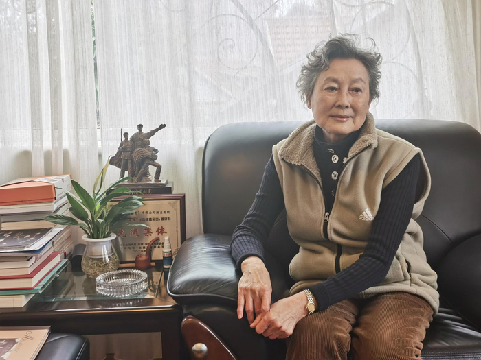 向梅在上影演员剧团接受记者访问,张熠摄