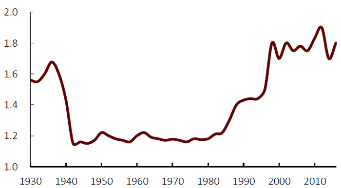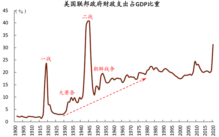图表: 1930年代后政府支出占GDP比重趋势性抬升