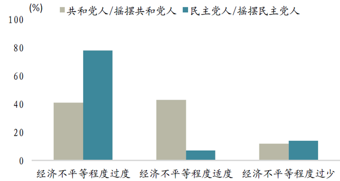 图表: 认为存在过度经济不平等的人中,民主党占比更高