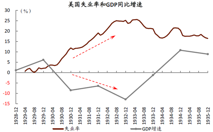 图表: 1930年,美国经济已经负增长,失业率突破10%