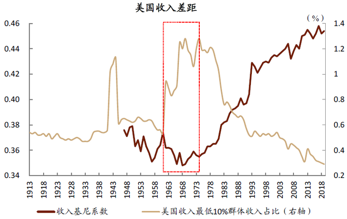 图表: 1960年代,美国低收入群体收入大幅改善