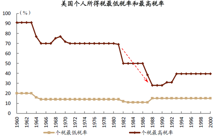 图表: 1980年代大幅降低个人所得税
