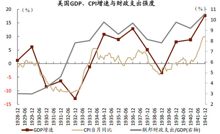 图表: 1930年代上半叶,财政扩张拉动经济和通胀