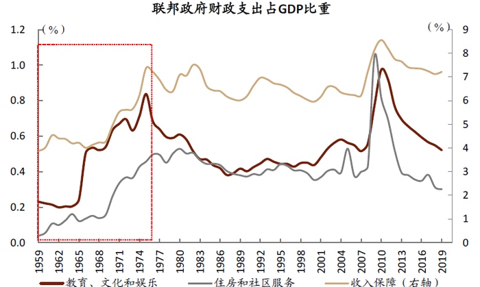 图表: 1950-1970年代联邦政府在民生领域的支出扩张