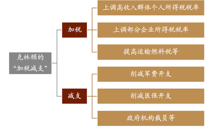 图表: 克林顿政府采取措施“加税减支”、平衡财政