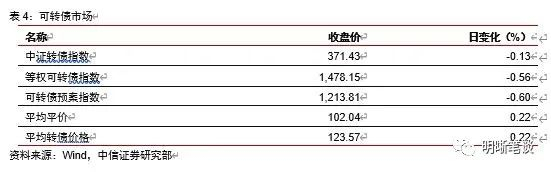 4月23日转债市场,中证转债指数收于371.43点,日下跌0.13%,等权可转债指数收于1,478.15点,日下跌0.56%,可转债预案指数收于1,213.81点,日下跌0.60%;平均平价为102.04元,日上涨0.22%,平均转债价格为123.57元,日上涨0.22%。359支上市交易可转债,除天康转债、一品转债、浦发转债、中金转债、华自转债横盘外,185支上涨,163支下跌。其中东财转3(30.00%)、九典转债(29.40%)和中钢转债(29.00%)领涨,康隆转债(-6.49%)、华锋转债(-4.84%)和伊力转债(-4.42%)领跌。349支可转债正股,除威唐工业、洽洽食品、川金诺、润达医疗、楚江新材、星帅尔、浦发银行、长久物流、长江证券横盘外,106支上涨,240支下跌。其中英科医疗(10.29%)、美诺华(10.01%)和小康股份(9.99%)领涨,亚太股份(-10.05%)、正元智慧(-6.45%)和荣泰健康(-6.35%)领跌。
