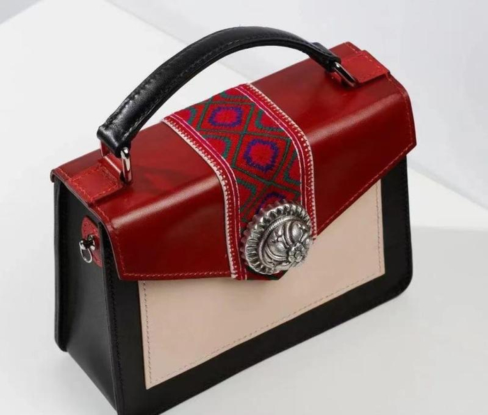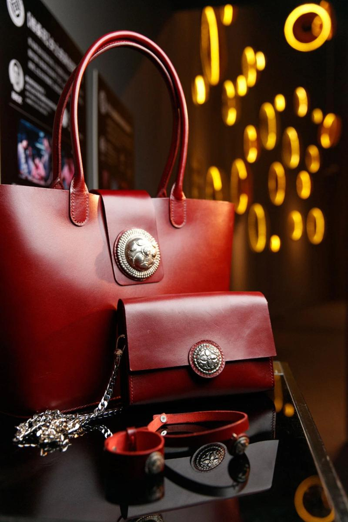 设计出纹样后,再进行“混搭”。段松文与设计师何然的跨界合作皮具系列,绛红色的包身搭配银白色格桑花图案的包扣,顿时呈现都市朋克风格;再将大大小小的纹样与雪纺、丝绒、蕾丝等各种服装材质结合在一起,同样别具一格。此后,“格桑花”藏银锻造服饰系列每年在上海设计周等展览中定期发布,广受好评,并进入了拍卖渠道。
