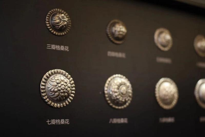 2017年的果洛研培班,来了位学员名叫段松文。他是一位银饰锻造传承人,从事这一行已经30余年,最擅长的是腰带花银饰。腰带花(见下图)是藏族妇女佩戴在腰间的半球形金银饰品,纹样题材多是花卉。段松文制作的腰带花,纹样细腻精致,很有韵律感,让上海美术学院的师生一见倾心。