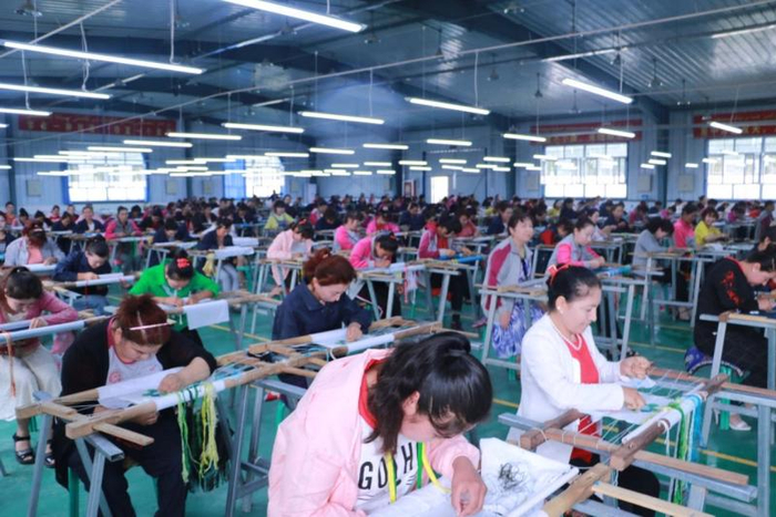 与此同时,钱美荣坚持给当地人培训刺绣技能。贫困妇女学会了刺绣技艺,在家门口的公司就业,就能顺利解决温饱问题。作为扶贫企业,钱美荣的公司目前已经解决工人就业340多名,其中建档立卡贫困户160多名。因为做工精美、样式独特,厂里出产的刺绣品很受欢迎,订单源源不断。