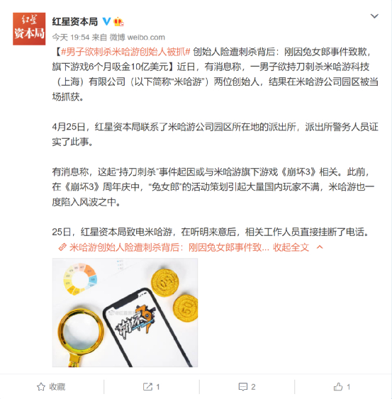 从上周开始,互联网上就有传闻显示,米哈游公司园区现场抓获了一名想要持刀刺杀公司两位创始人的歹徒,刺杀之后准备跳楼自杀,而诱发这名歹徒刺杀公司创始人的原因仍然是近期闹得沸沸扬扬的《崩坏3》兔女郎事件。