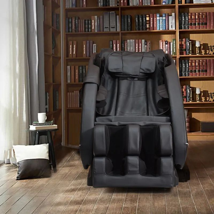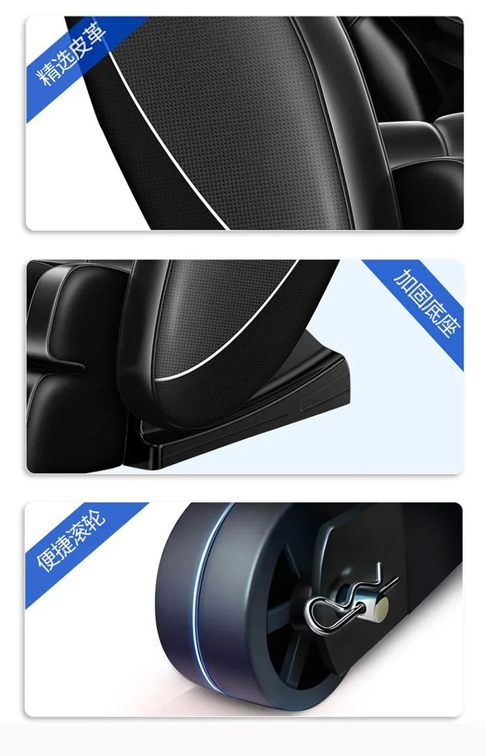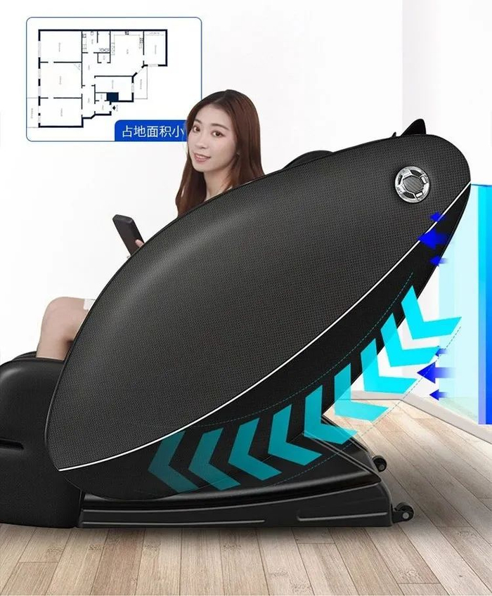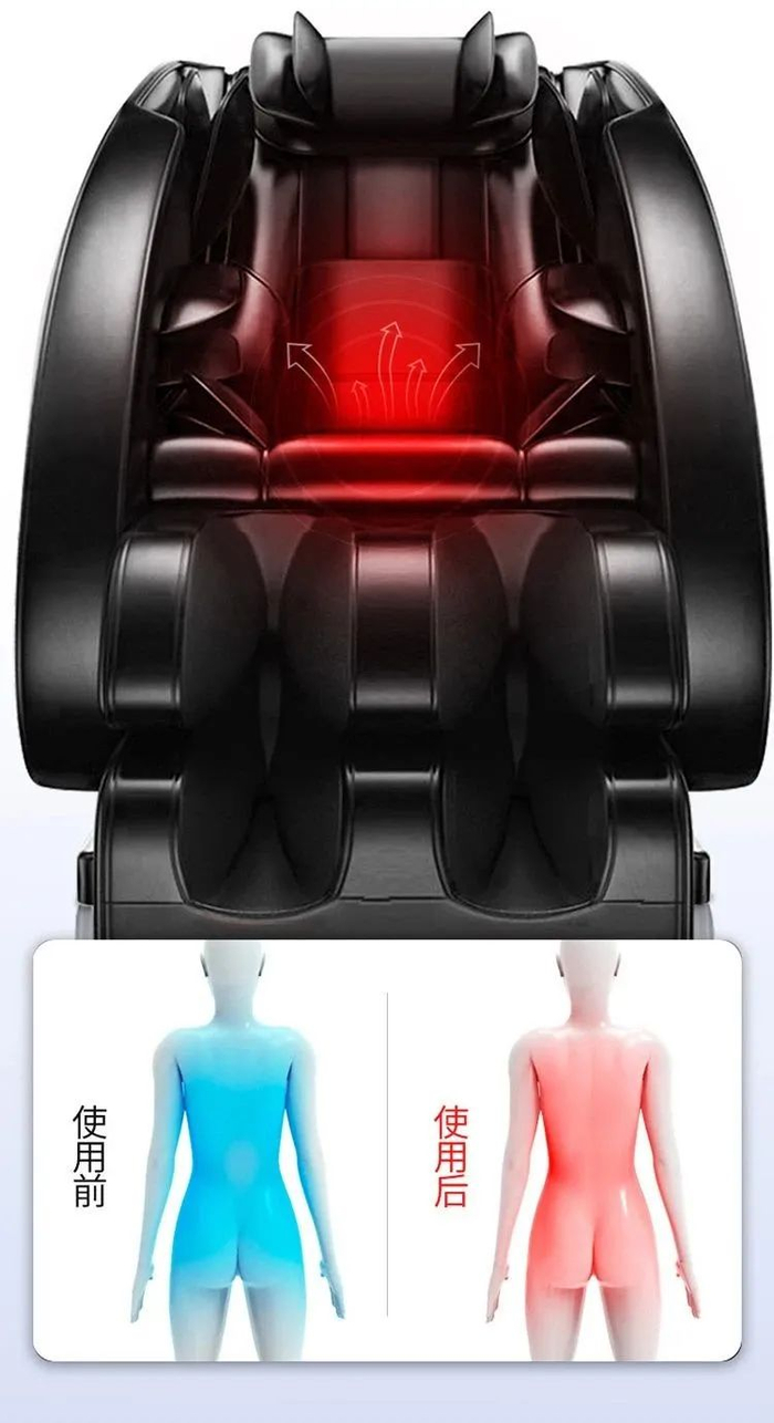 它按照人体模拟零重力原理,可以一键调节靠背,让全身的重量均匀分布在按摩椅上,减少脊椎和各个关节的压力。