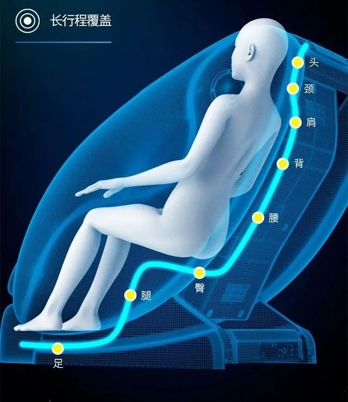 加长SL导轨,深V浮躺。贴合人体曲线,舒适享受按摩。更贴合,更舒适。