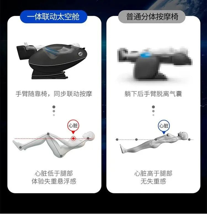 模拟太空舱失重感,全身重力均匀分布,按摩更舒适。