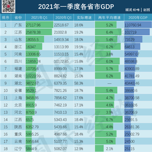 这是2021年一季度中国内地31个省市GDP数据:
