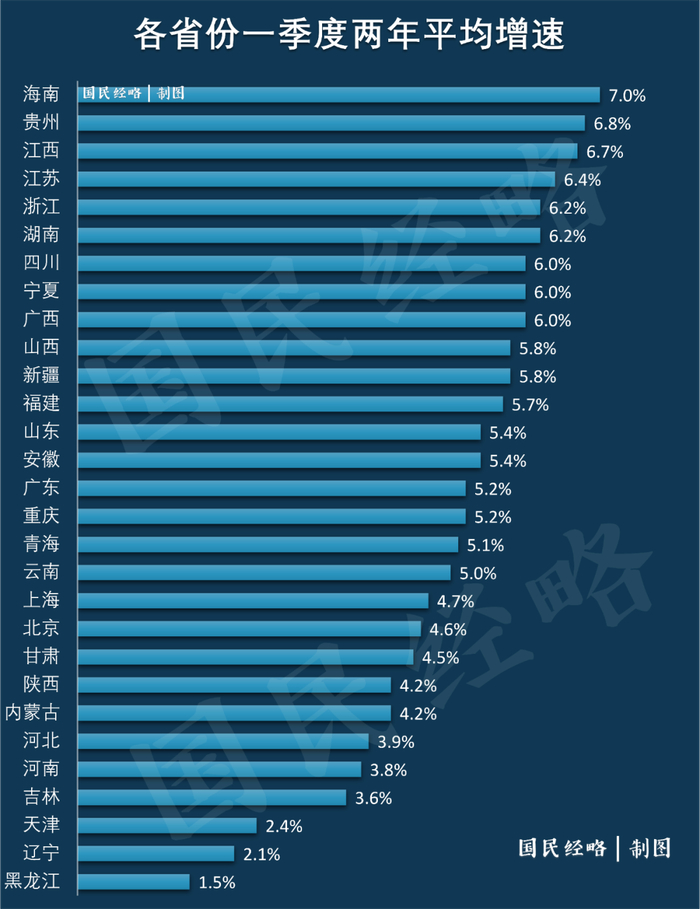 其二,从两年平均增长情况来看,海南、贵州、江西、江苏、浙江、湖南最高。