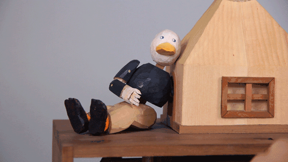这件作品叫《我自己》,讲的是展览上一个老奶奶带着小孙女,小孙女问为什么鸭子伸手出来什么也没摸到,奶奶说找自己是一个过程,人都是会变化的,一辈子都在找自己。