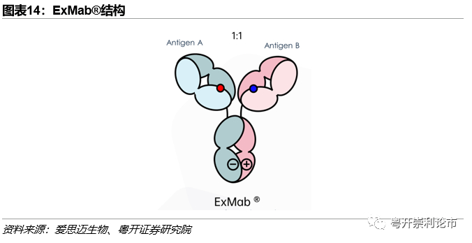 爱思迈是位于广州开发区,是一家专注于双特异性抗体药物的研发与产业化的生物医药公司。爱思迈拥有四链双特异性抗体平台ExMab®,该平台利用蛋白质工程技术将两个不同的特异性的抗体分子融合在一起,使其形成稳定的、免疫原性很低的药物实体。ExMab®的技术创新为在两条重链上分别引入负电荷或正电荷的突变位点,使得两条链通过静电吸引。同时,团队于2018年新申请的PCT专利所描述的方法解决了轻链与重链错配问题,使得正确装配的双特异性抗体纯度接近95%。