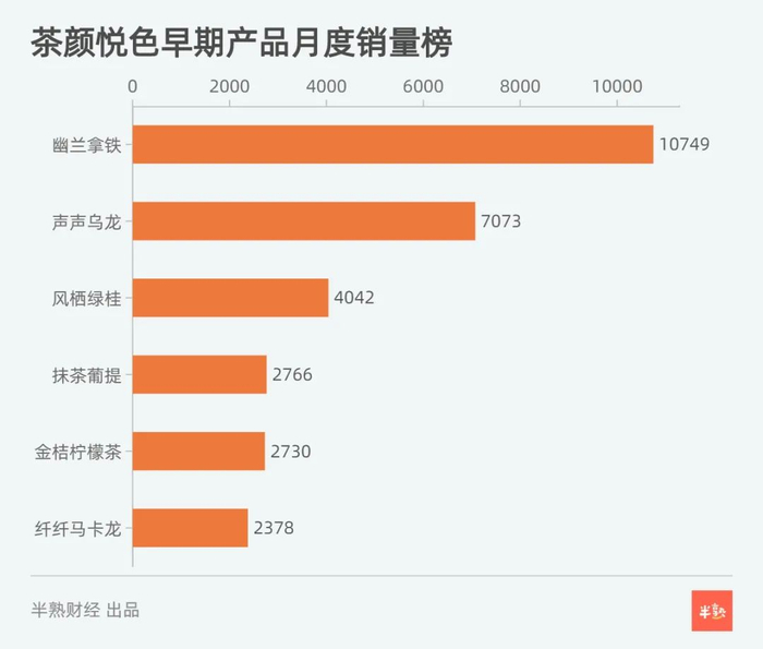 不过,茶颜的产品线中也存在口味偏甜的奶茶——芊芊马卡龙。这款以可可而非茶为主角的饮品,从推出之日起就遭到很多人的“嫌弃”。据茶颜悦色2014年公开的一份月销售数据显示,幽兰拿铁和声声乌龙当月各卖出1万余杯和7000余杯。相比之下,芊芊马卡龙仅售出2378杯,在六款饮品中排名垫底。
