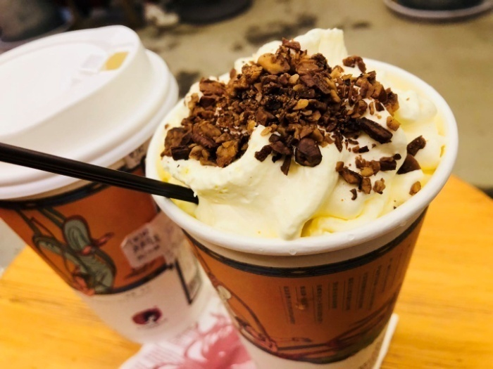 今年24岁的六一形容自己是“喝着茶颜悦色长大的”,她的第一杯茶颜是招牌产品幽兰拿铁。据官方介绍,这款奶茶采用上等锡兰红茶作为基底,加入鲜奶和打发的奶油顶,再缀以碧根果碎,形成了“红茶涩香、奶沫柔滑、坚果浓香”的三层口感。