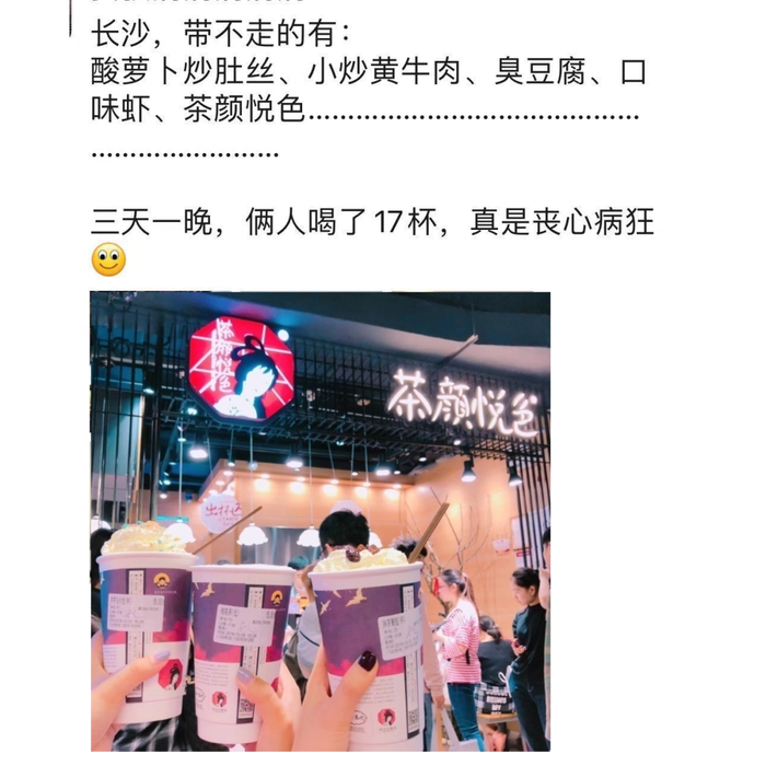 可以说,长沙人是用脚投票,选择了茶味更突出、口感更清新的饮品,也让茶颜悦色在长沙的土壤上扎了根。