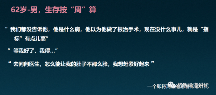 我之前遇到的一位62岁的先生,他剩下的时间很短了,按我们的经验去计算,可能是要以“周”计算。