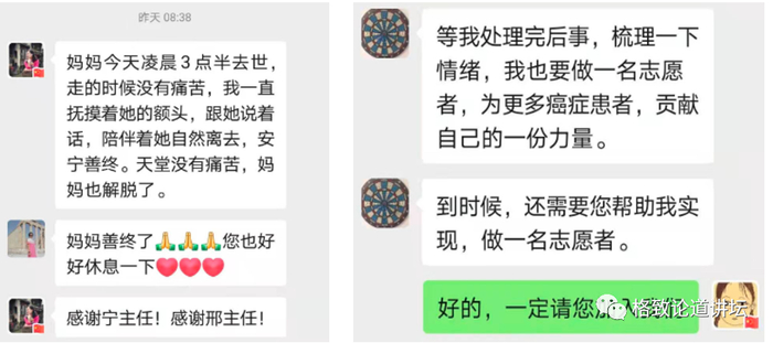 还有的人表示“我要去你们的志愿团队做志愿者”,这些都给我力量。从我上医科大学的时候,我就知道:我们要帮病人治疗疾病,让他们好好的活。现在我的感受是:我们去帮一个痛苦的病人平和的离世,这个过程获得的成就感比把一个病人治好更大。很多病人家属,在病人离世之后,仍然给我们送来锦旗。