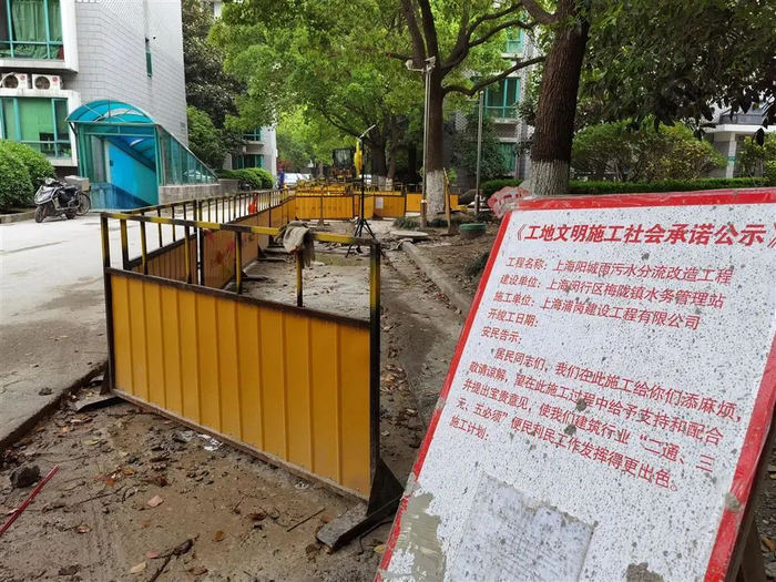 在小区罗锦路正门处,记者看到了一块施工铭牌。铭牌显示,上海阳城的雨污分流改造工程建设单位为“闵行区梅陇镇水务管理站”,一部分工程的施工方为“上海浦岗建设工程有限公司”,而整个工期要持续到今年9月底。为了遏止种种施工不文明现象,连日来,居民们多次拨打“12345”求助。