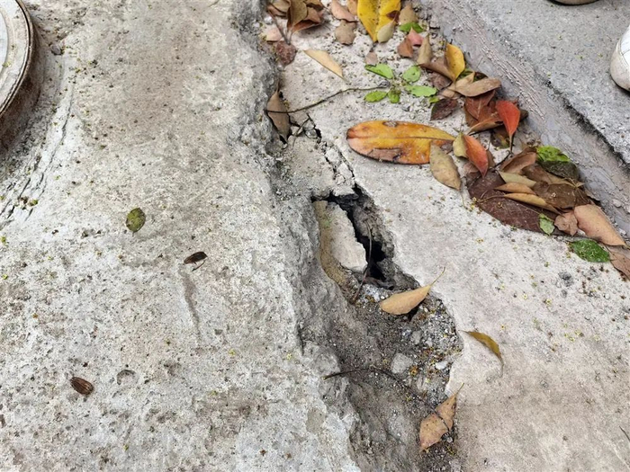 绕了一圈后,胡先生又带着记者回到了近西门处的南北主干道上,并强调这是他最为担心的事,即小区工程的施工质量。据称,小区居民们发现,道路开挖铺好管道后,回填时使用了大量石块,但堆叠得较为松散未压实。他向记者演示,在主干道上随处找了一块区域猛踩后,水泥随即裂开下陷,凹陷处下方竟是空的,并未填实。据称,7支弄西侧的干道路面刚铺上沥青不久后就发生了塌陷,居民们认为原因也正是因为路基回填不到位,“这样的路面交还给我们,如何让人放心?”