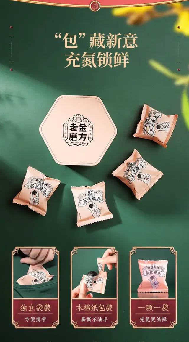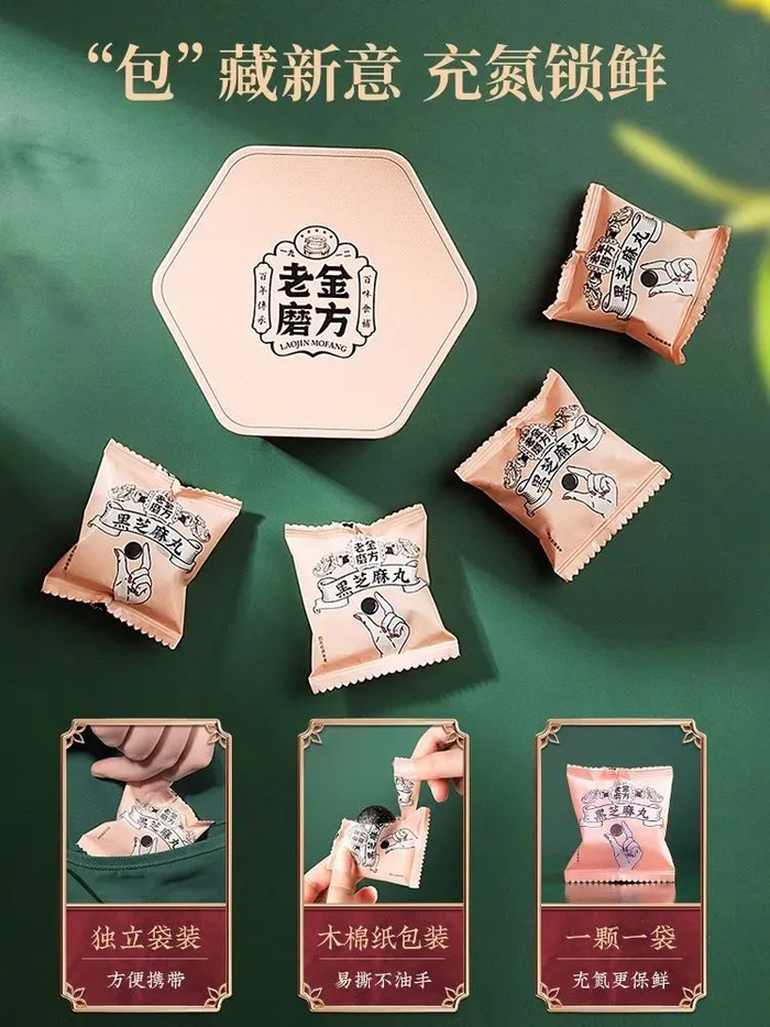 每一颗黑芝麻丸都采用木棉纸独立包装,干净卫生,精致美观。一颗黑芝麻丸,经八繁九制之功,无任何防腐剂,不添加色素,入口细腻、纯正,既是养生佳品,也是健康解馋小零嘴。
