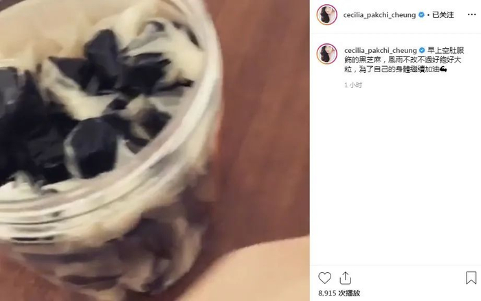 黑芝麻的功效人人皆知,用水服送可以保持头发乌黑、滋润五脏。视频中可以看出张柏芝没有用很夸张的滤镜,并且素颜出镜,隐约能看到脸上的小斑点,但状态保持的很好,没有化妆也非常精神。