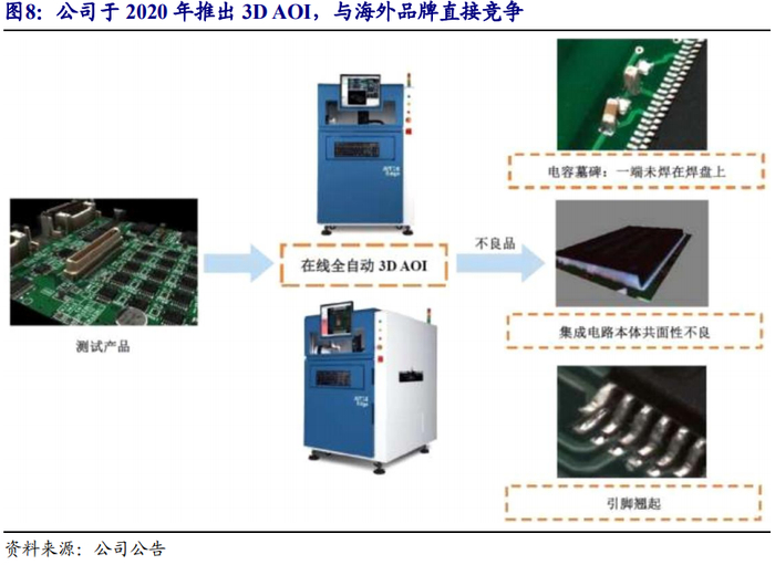 (2)推出的Mini LED AOI在Mini LED快速发展期将具备较大的需求,3D AOI成功导入汽车电子行业,在FPC、半导体、医药等下游行业的产品布局逐渐落地,并实现放量;